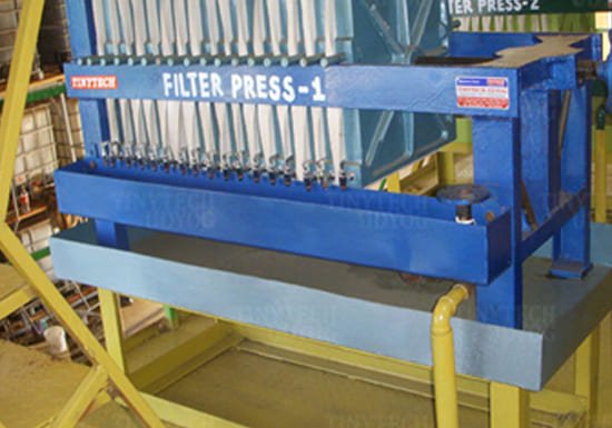 An industrial filter press is a tool used in separation processes, specifically to separate solids and liquids. The machine stacks many filter elements and allows the filter to be easily opened to remove the filtered solids, and allows easy cleaning or replacement of the filter media.